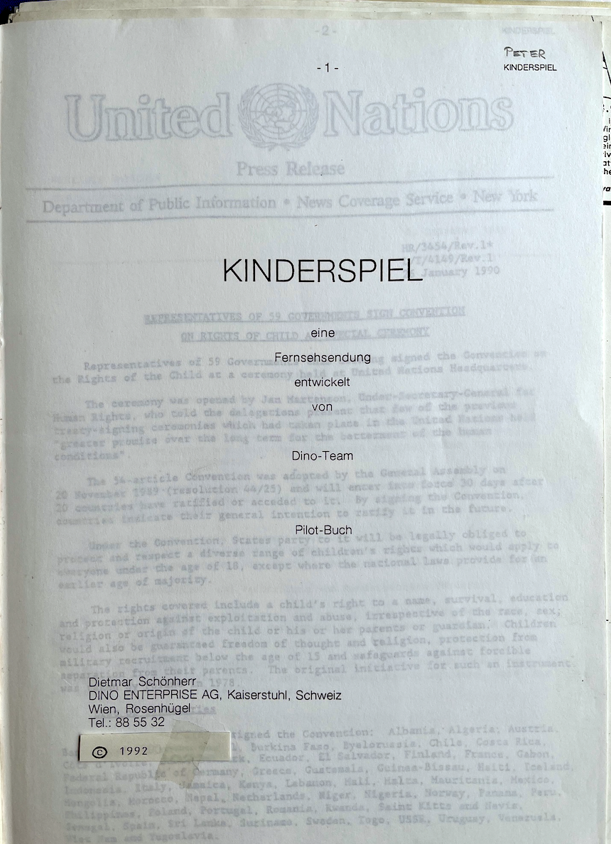 "Kinderspiel" - Die geplante grosse ORF live Show - von Dietmar Schönherr und Peter reichelt - 1990 bis 1992 -
